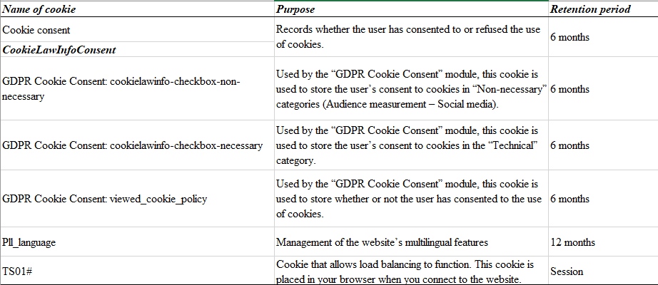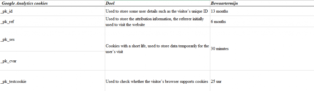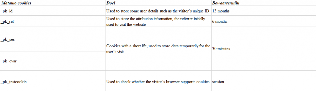 VINCI Energies Nederland maakt, enkel voor eigen gebruik, gebruik van Matomo audience measurement cookies. De enige doeleinden van deze cookies zijn hierboven bij de beschrijving van analytische cookies opgesomd.